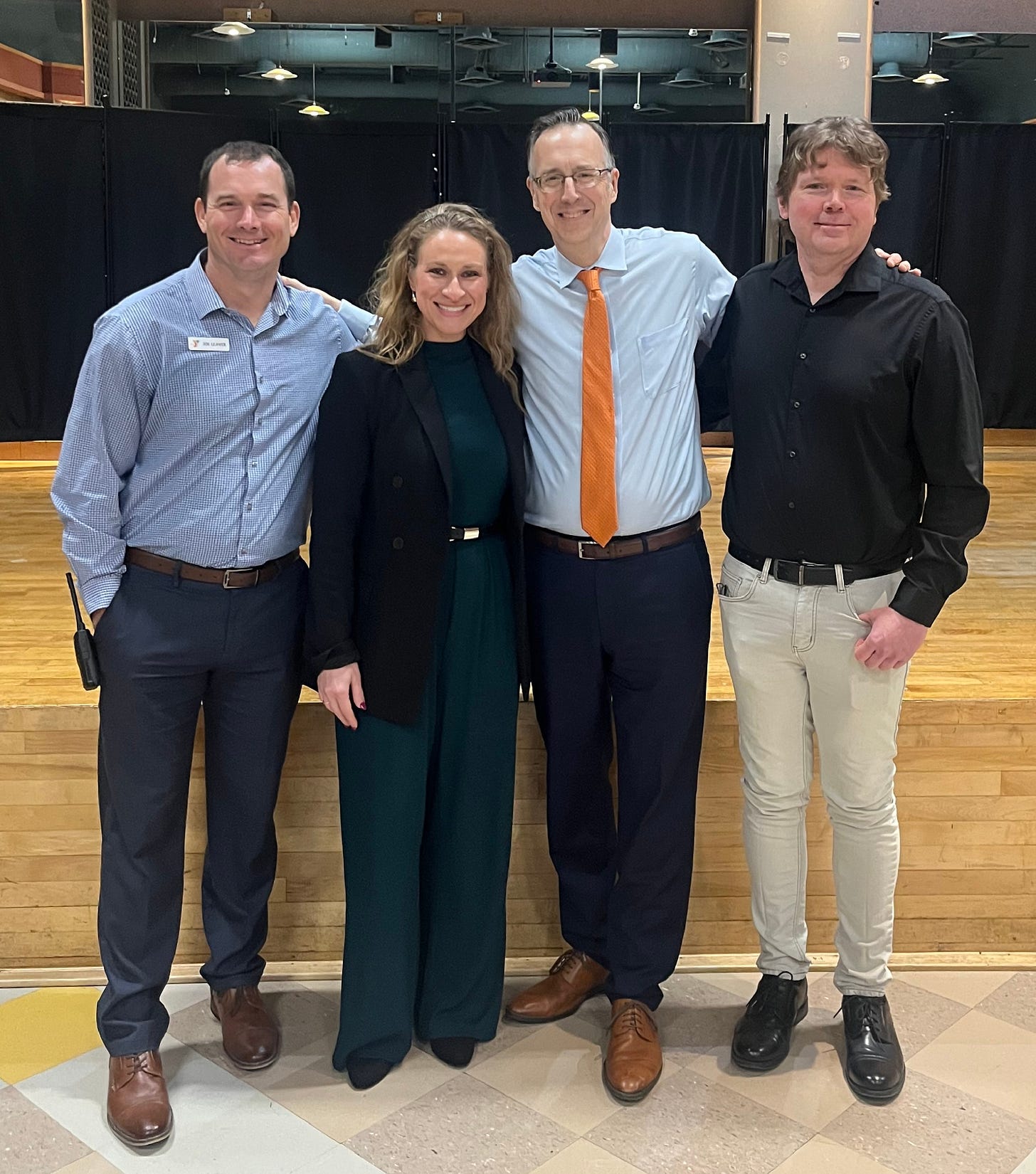 Image Description: Photographic evidence of two of the shared leadership structures that I am privileged to be a part of. From left, Joe Leaver of Old Colony YMCA, a key player in the Brockton Career and Community Initiative (BCCI). Elyse Forbush of Run the Gamut, Secretary of the MA-APSE Board and a key player in the BCCI. Me. And Terry Holmgren of the South Shore Collaborative on Employment, Institute for Community Inclusion, MA-APSE, and the BCCI. Grateful for their partnership and mindful that progress requires such weaving.